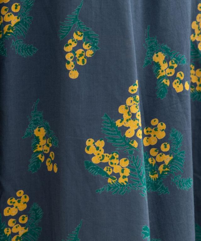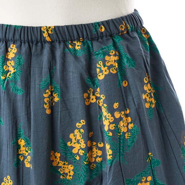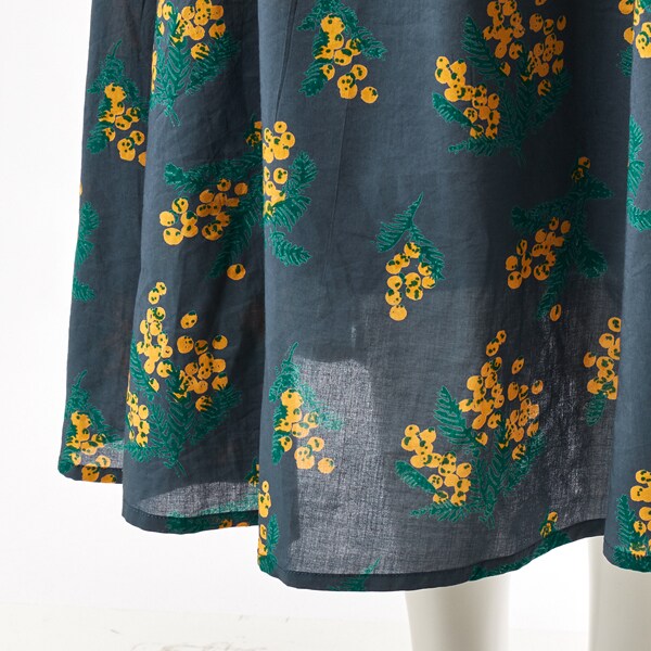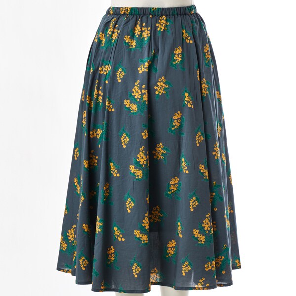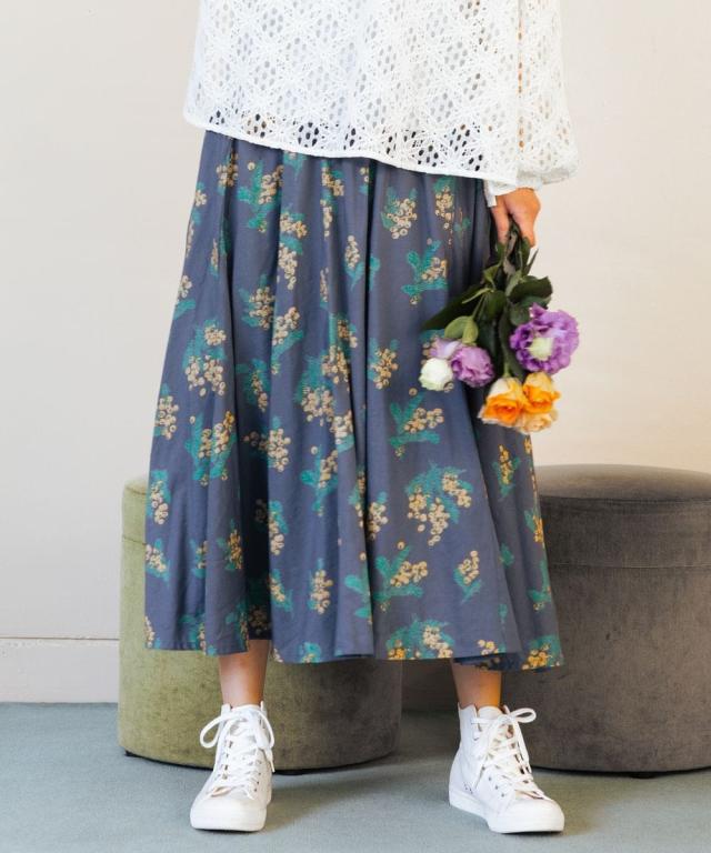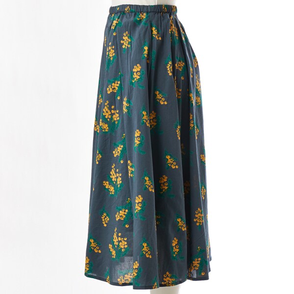 春らしいミモザプリントが目を惹く、落ち着いた印象のフレアスカート。