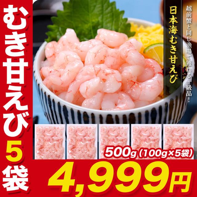 日本海むき甘えび500g(100g×5袋)訳あり小サイズ数量限定品※手むき加工のため殻やヒゲ混入する場合があります。 海老 エビ 甘海老 甘エビ e_am