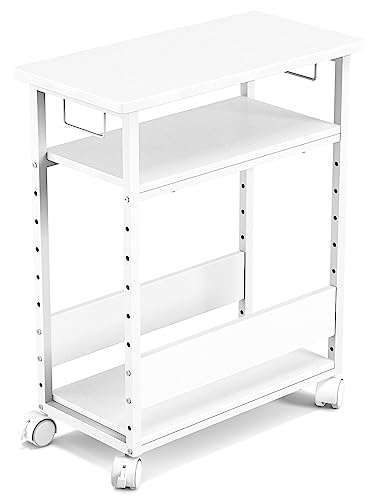 MIYOKI パソコンワゴン PCワゴン 複合機ラック CPUワゴン キャスター付き デスクワゴン 棚板高さ調節可能 パソコン収納 木製 デスクサイ