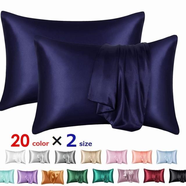 枕カバー 2枚セット 寝具 サテン インテリア コーディネート シンプル おしゃれ 無地 カラバリ豊富 黒 白 紺