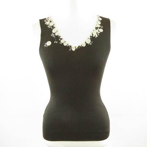 【中古】アイシービー iCB ニットタンクトップ リブ 刺繍 茶 S *A242 レディース