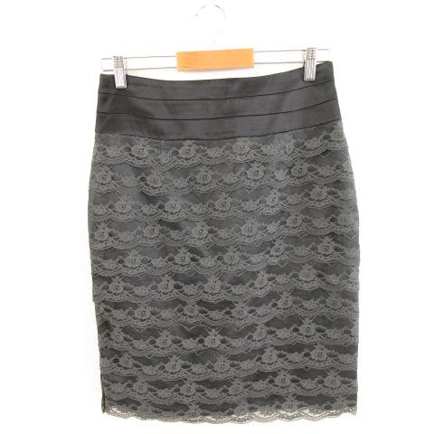 【中古】エイチ&エム H&M ティアードスカート レース ひざ丈 タイト グレー 40 *A251 レディース
