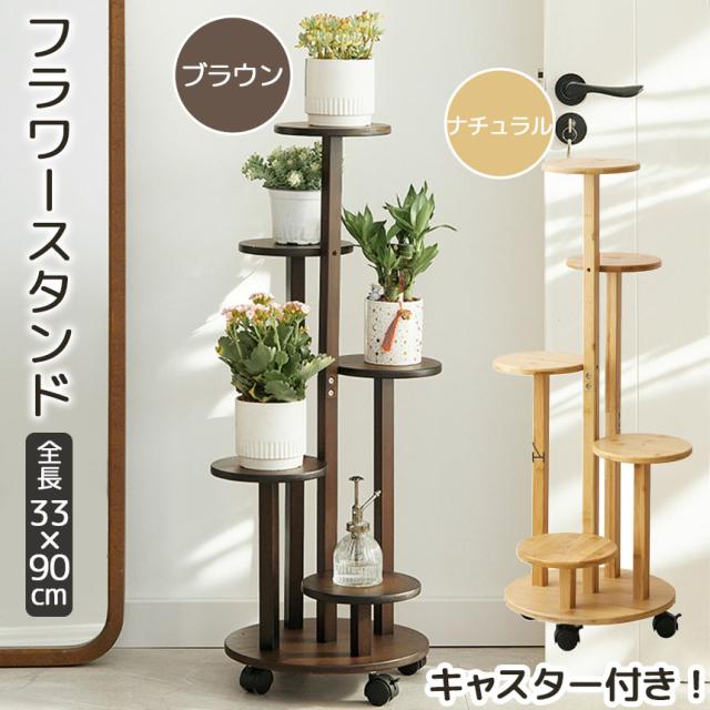 フラワースタンド 竹素材 キャスター付き 5段 2カラー 鉢置き台 園芸ラック ガーデニングラック プランター台 ガーデンラック プランタースタンド 盆栽スタンド 植物スタンド 植物棚 花台 フラワーラック ベランダ リビング キッチン 玄関 寝室 インテリア