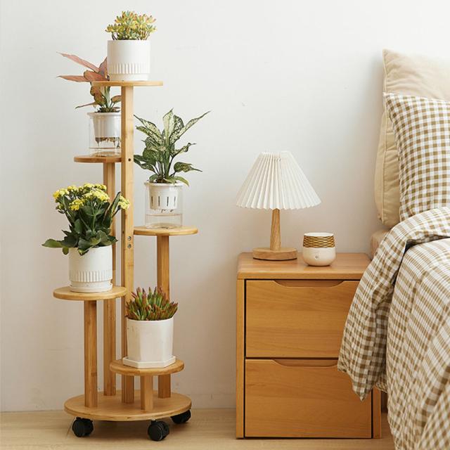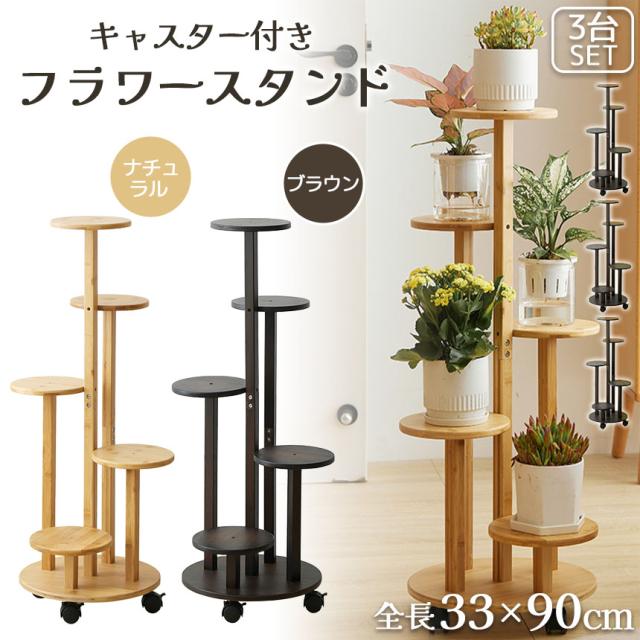 フラワースタンド 竹素材 キャスター付き 5段 2カラー 3台セット 鉢置き台 園芸ラック ガーデニングラック プランター台 ガーデンラック プランタースタンド 盆栽スタンド 植物スタンド 植物棚 花台 フラワーラック ベランダ リビング キッチン 玄関 寝室 インテリア