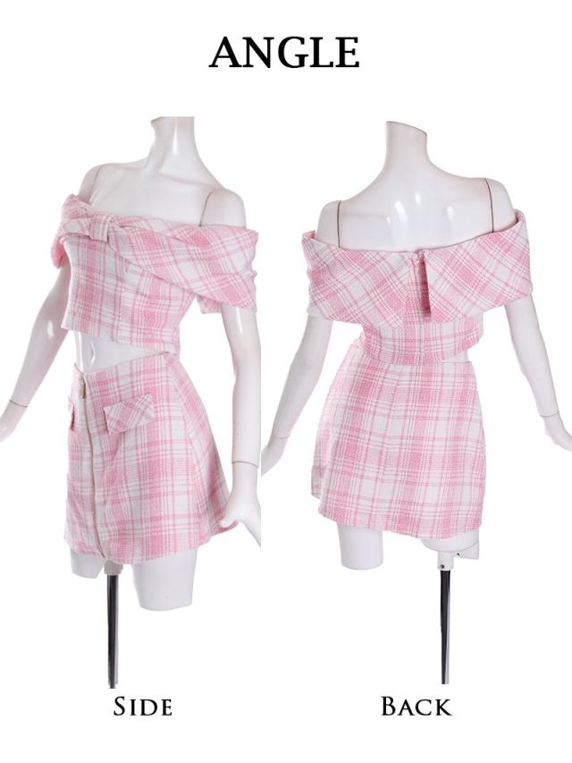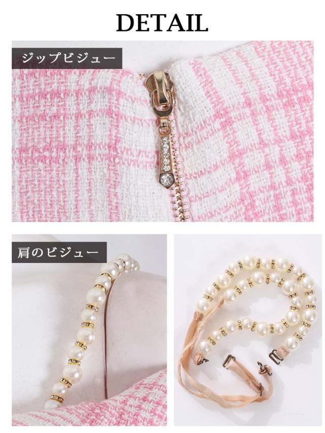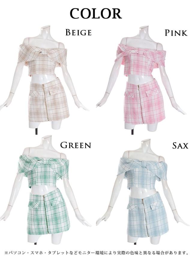 セットアップドレス puress ピュアレス PURESS ツイード かわいい 青 みどり ピンク キャバ ドレス キャバドレ
