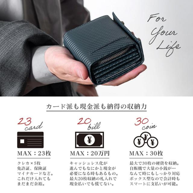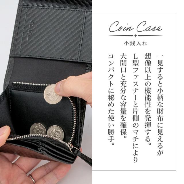 【限定1,500円OFF】【4,980円→3,480円】Dom Teporna カードがたくさん入る二つ折り財布 ファスナー型 高耐久カーボンレザー メンズ 折りたたみ L字ファスナー コンパクト 小さい ミニ 軽量 軽い 小銭入れ カード入れ