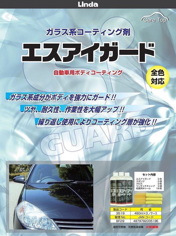 横浜油脂工業(Linda) ガラス系ボディコーティング剤 エスアイガード 480ml BF29(3519) BF29 3519 横浜油脂 リンダ SI GUARD ガラス系 コーティング剤 ボディ 塗装 ツヤ出し つや出し 480ミリリットル 480cc 4979782035196 tool ツール 工具 整備 用品 化学製品 作業用品 車輌整備用品 洗車用品 工場用品 工業用品 ケミカル用品 カーケミカル automobile motorcar オートモービル モーターカー カー 車 自動車 車両 506393820