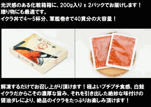 竈いくら 200g x 2パック=合計400g 化粧箱入り 特級品の鮭イクラを秘伝の醤油ダレで漬け込んだ極上の味わい 太田與八郎商店の醤油 浦霞の純米酒 ギフト 母の日 父の日 系統の日 お歳暮