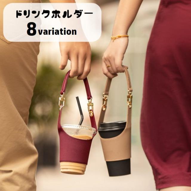 ドリンクホルダー カップホルダー ストラップ付き 面ファスナー レザー調 ボア 手提げ 持ち歩き便利 テイクアウト 水筒用アクセ