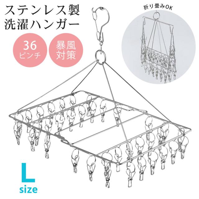 ピンチハンガー ステンレス 36ピンチ L 洗濯ハンガー ステンレスハンガー 防風機能付き さびにくい 洗濯 物干し 角 ハンガー 【沖縄県除き送料無料】 タオル 錆びない 割れない 日光に強い スチール 丈夫 長持ち 丈夫 新生活 引っ越し 一人暮らし 部屋干し ギフト agesugi_snk