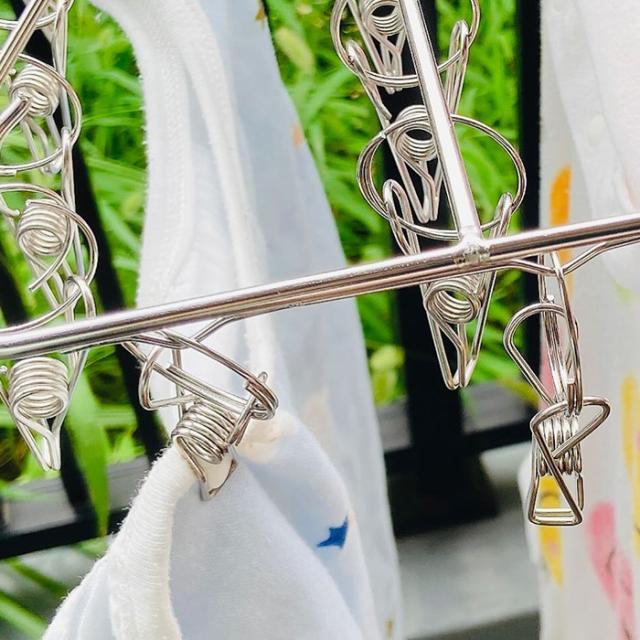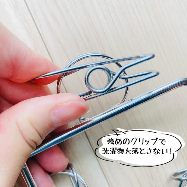 ステンレス製なので、強烈な真夏の紫外線にも強く、梅雨時の続く雨にもさびに強い作りのピンチハンガーです。