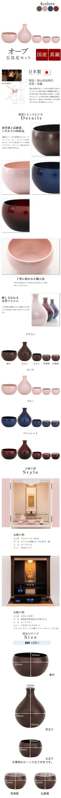 仏具 セット【モダン仏具セット オーブ3.0寸 5点】【ワイン ピンク ブラウン、ブルー】【国産仏具】【家具調用仏具】【モダン仏壇】 小物