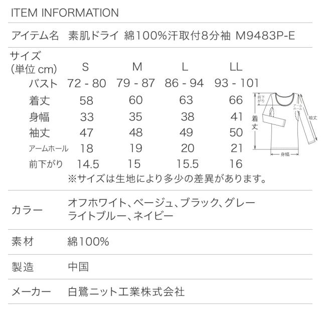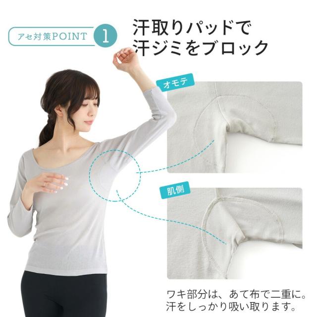 綿100% 汗取り インナー 8分袖 長袖 脇汗 インナーシャツ レディース 半袖 汗取り パッド付き 素肌ドライ 春夏 汗染み 防止 汗 対策 半袖 シャツ 綿 汗とり パット付き 吸汗速乾 M9483P-E