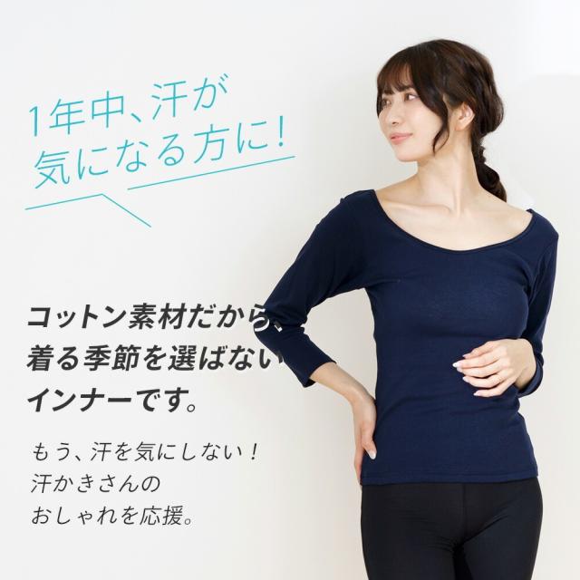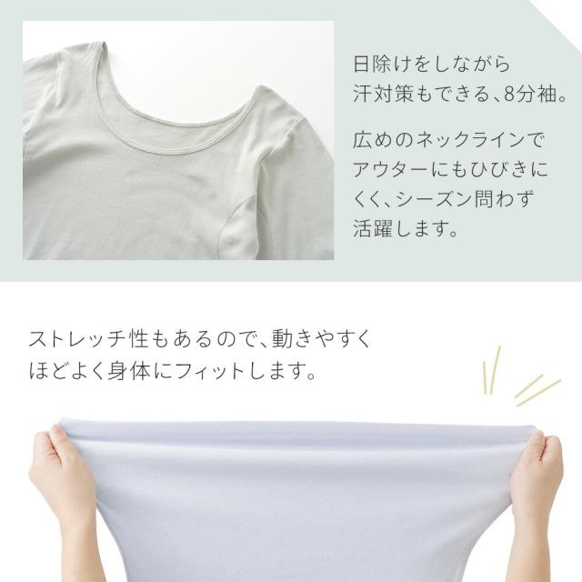 汗ばむ季節を快適にする、綿100%汗取り8分袖。