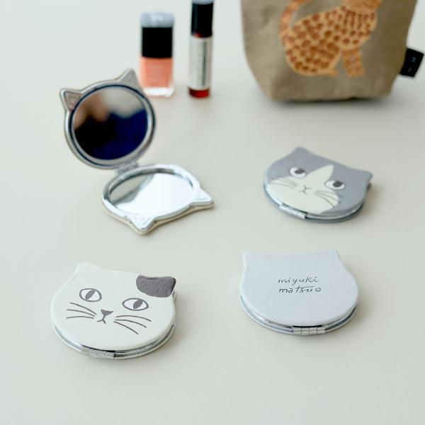 松尾ミユキ コンパクトミラー|猫 キャット 雑貨 手鏡 鏡 両面鏡 かわいい おしゃれ ミニ メイク直し 拡大鏡