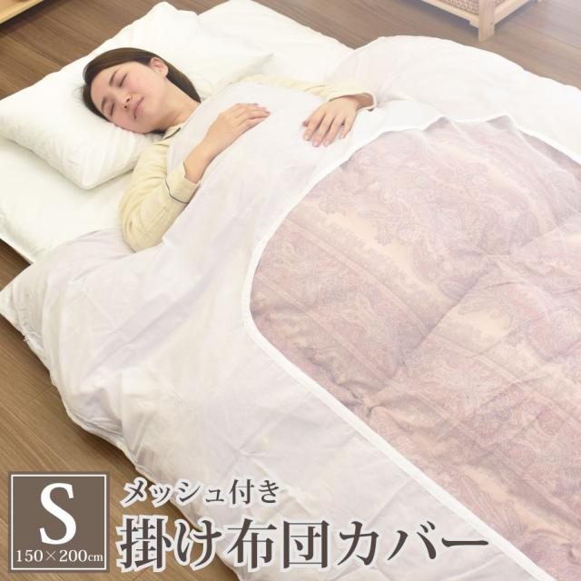 掛け布団カバー シングル 150×200cm 白 無地 ネット張り ポリエステル65% 綿35% メッシュ 窓付き ファスナー 和式 羽毛布団 旅館 業務用 来客用 洗い替え用 KCV6104