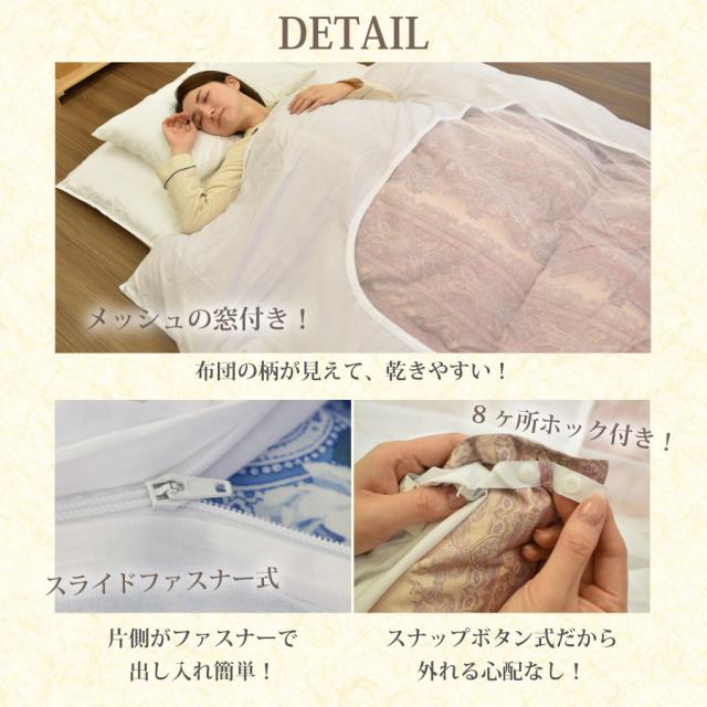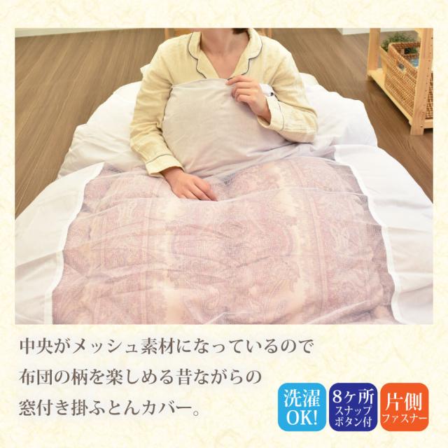 ・昔ながらの窓付きカバーで布団の柄が楽しめます。