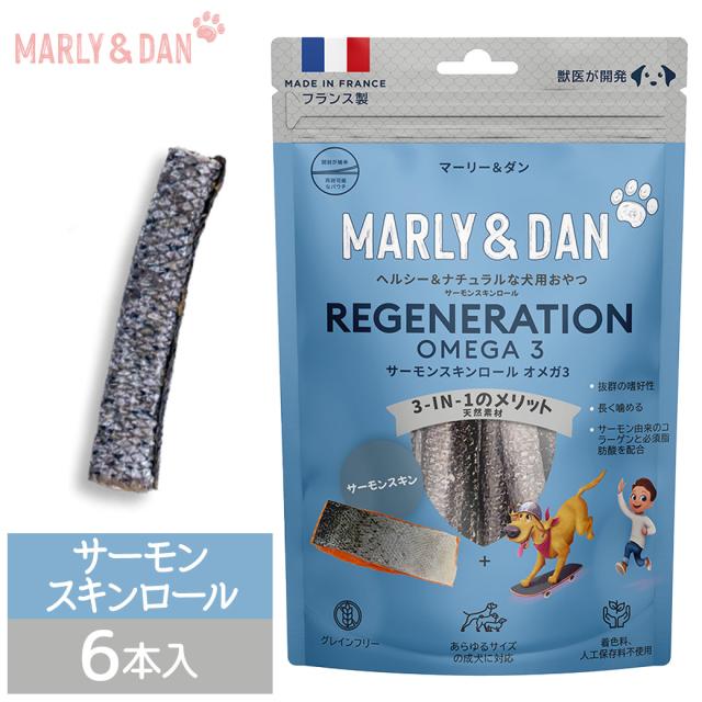 マーリーアンドダン M&D ヘルシー&ナチュラルな犬用おやつ サーモンスキンロール オメガ3 6本