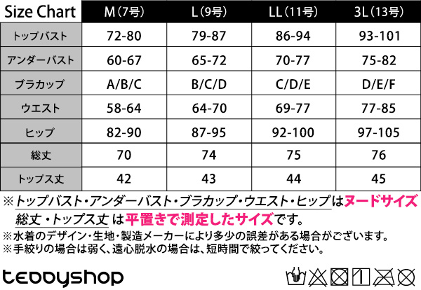 ※トップバスト・アンダーバスト・ブラカップ・ウエスト・ヒップはヌードサイズ、