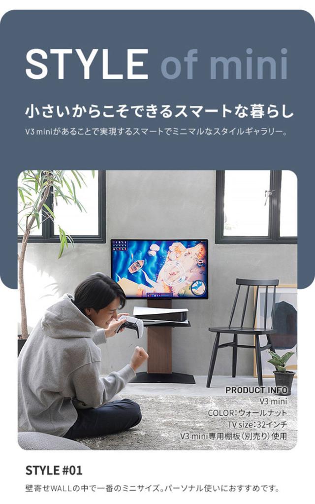 テレビ台 WALLインテリアテレビスタンドV3 mini 24~55v対応 壁寄せテレビ台 TVスタンド 背面収納 コード収納 ミニ 小型 コンパクト 木目 震度7耐震試験済み EQUALS イコールズ(代引不可)【送料無料】