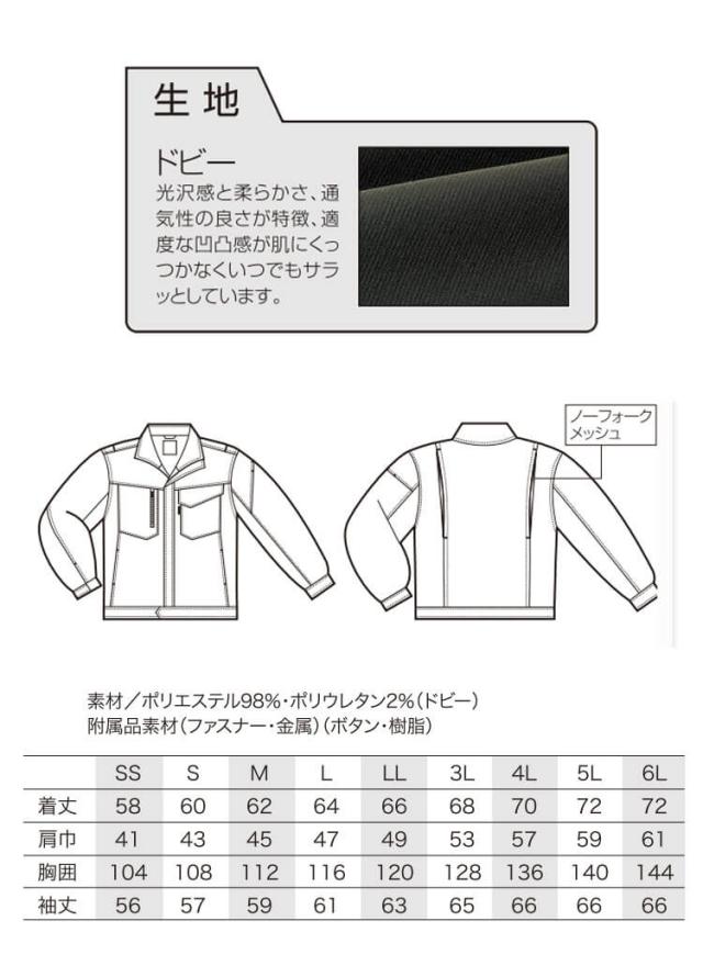 クロダルマ KURODARUMA 長袖ジャンパー 256851 作業着 作業服 春夏 サイズSS〜5L