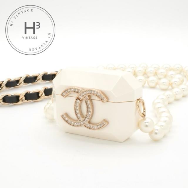 シャネル CHANEL ホワイト ゴールド ブラック ココマーク airpodsケース イヤホンケース チェーン パール ラインストーン