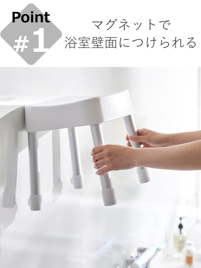 マグネットが使えない場合でも、バスタブの縁に掛ければ直接床に置かずに乾かせるので衛生的です。
