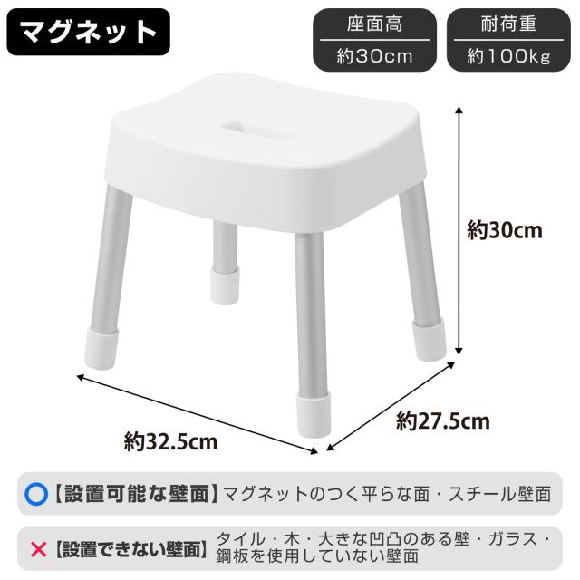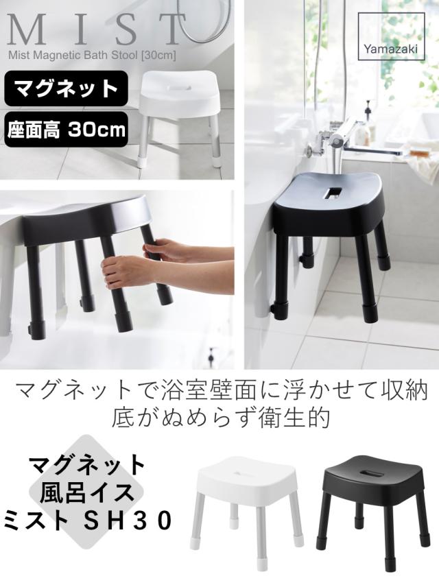 山崎実業 MIST マグネット風呂イス ミスト SH30 ( 4903208017237 ミストシリーズ 風呂いす バスチェア 風呂椅子 座面高30cm バスルーム ブラック ホワイト 磁石 壁面 ぬめり防止 清潔 衛生的 )