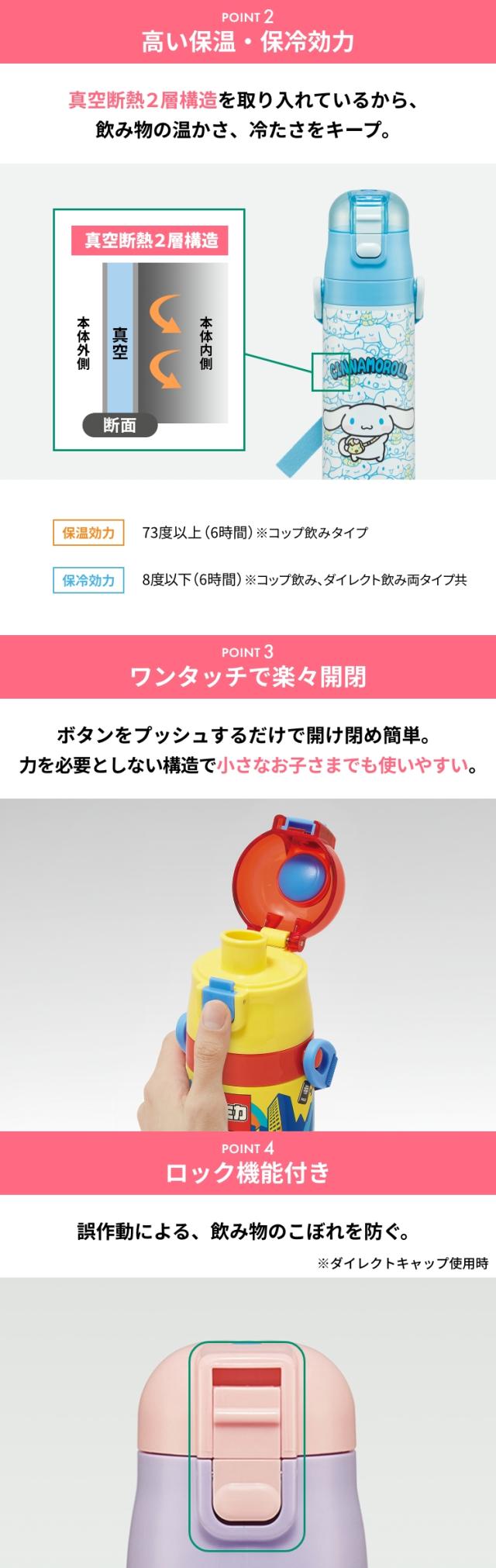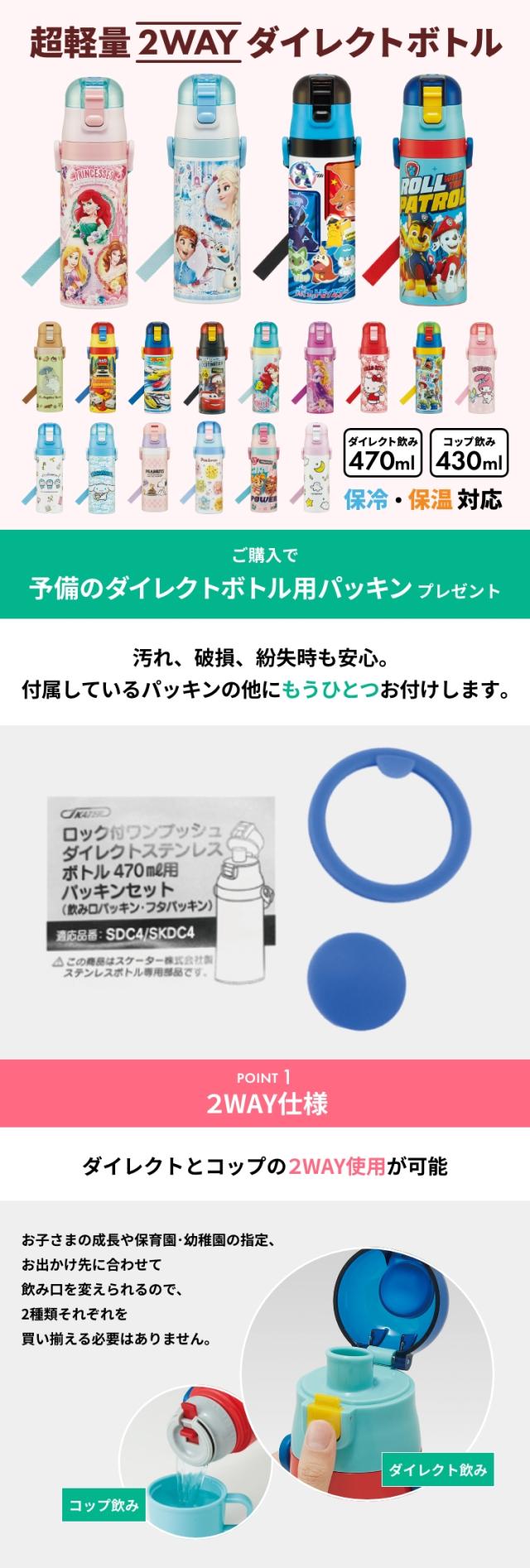 水筒 直飲み 予備パッキン 超軽量2WAYダイレクトボトル 直飲み470ml コップ430ml SKDC4+替えパッキンセット P-SDC4-PS スケーター 全19種類 ステンレスボトル キッズ 超軽量 キャラクター 軽い 子供 新生活 入園 入学 コップ付き 送料無料