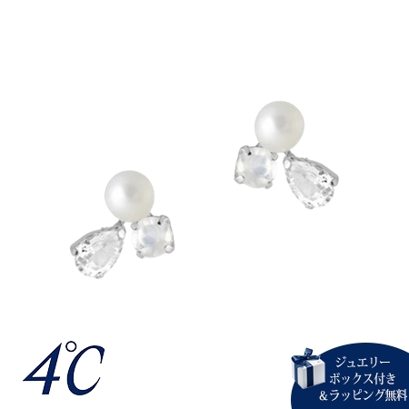 ヨンドシー 4℃ K10ホワイトゴールド ピアス 淡水パール ムーンストーン ホワイト トパーズ ブランド 正規品 新品 ギフト プレゼント 人気 おすすめ 誕生日 記念日 クリスマス 送料無料 ラッピング無料