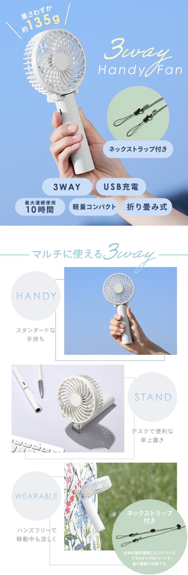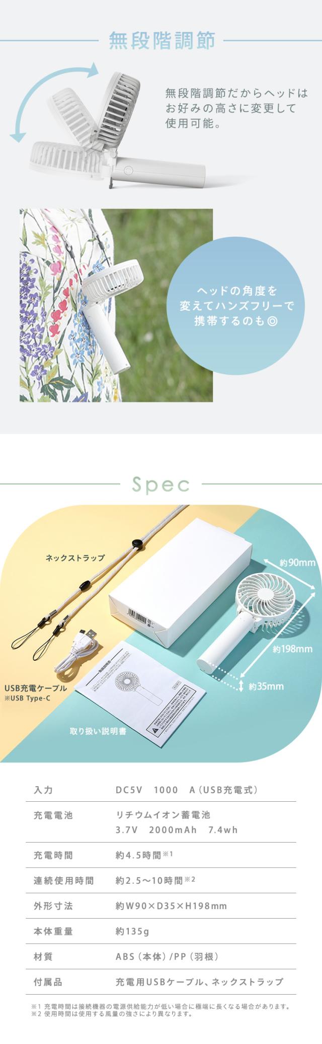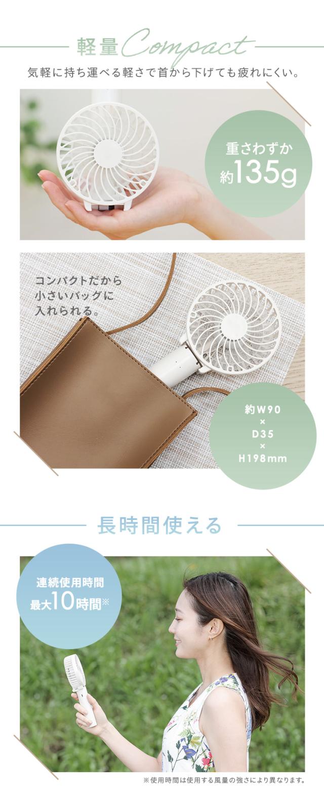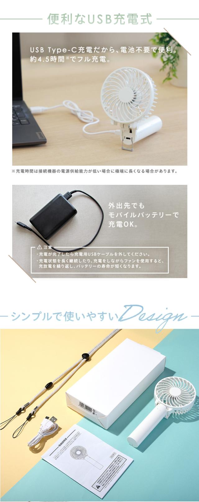 扇風機 モバイルファン ポータブル ハンディーファン ホワイト 猛暑 軽い 長持ち USB充電 ネックファン 卓上ファン ミニ扇風機