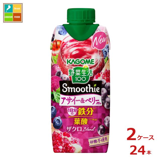 送料無料 カゴメ 野菜生活100 Smoothie アサイー&ベリーmix330ml紙パック×2ケース(全24本)