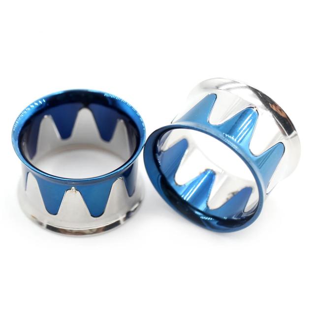 [0G 00G 12mm ボディピアス] フェースギアダブルフレア(ブルーxシルバー) ボディーピアス0ゲージ 00ゲージ 12.0mm 12ミリ ハーフインチ 面白い メンズ レディース ステンレス 青色 銀色 ギザギザ ツートンカラー おしゃれ おもしろい プラグ ダブルフレヤ