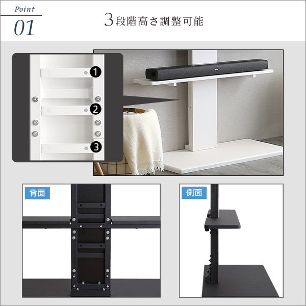 ●3段階高さ調整ができるので、テレビの大きさに合わせて設置できます。