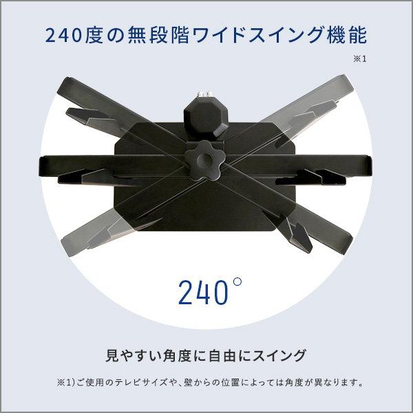 ●既にお使い頂いているテレビ台やテーブル、チェストの上に置いて、4段階の高さ調整や見やすい角度にスイングができる「ちょい上げスタイル」です。