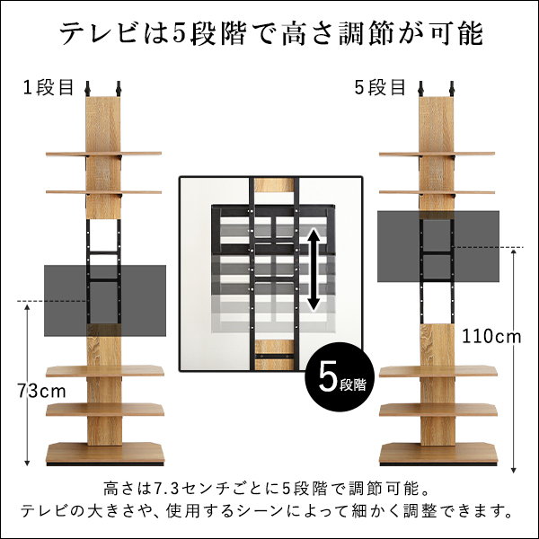 ●テレビ位置は5段階調整ができますので、お好みの高さに設置できます。