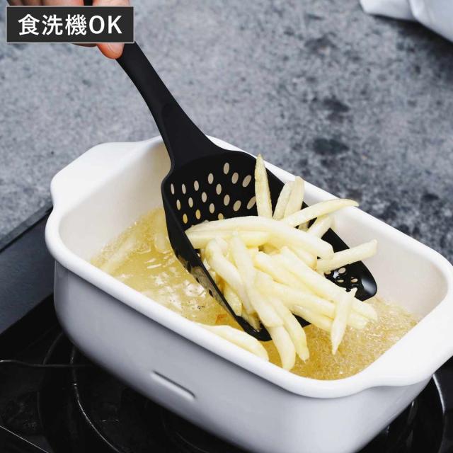 スコップストレーナー ナイロン製 食洗機対応 グラスファイバー入りナイロンツール ( ストレーナー 穴あきお玉 油切り 湯切り 角型 耐熱 穴あきレードル 油切りストレーナー キッチンツール 調理器具 調理用品 キッチン用品 )