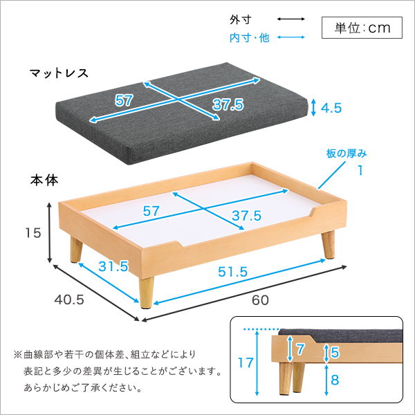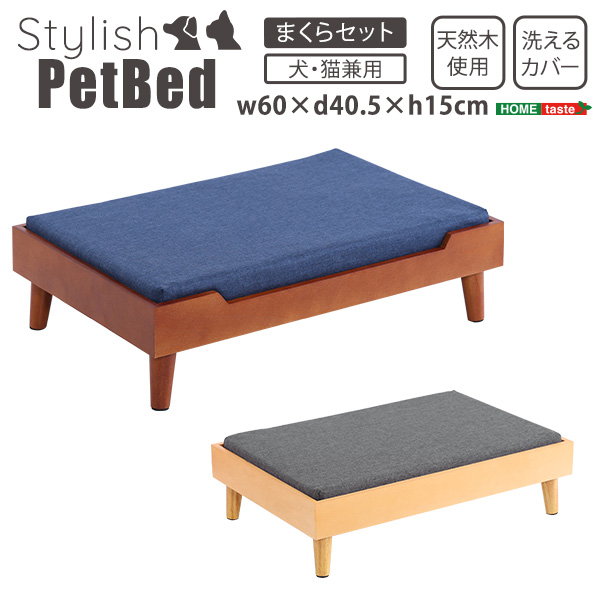 ペットベッド ベッド 犬猫兼用 ノーマルタイプ 脚付き 木製 天然木 小型犬 猫用 マットレス 洗えるカバー付き