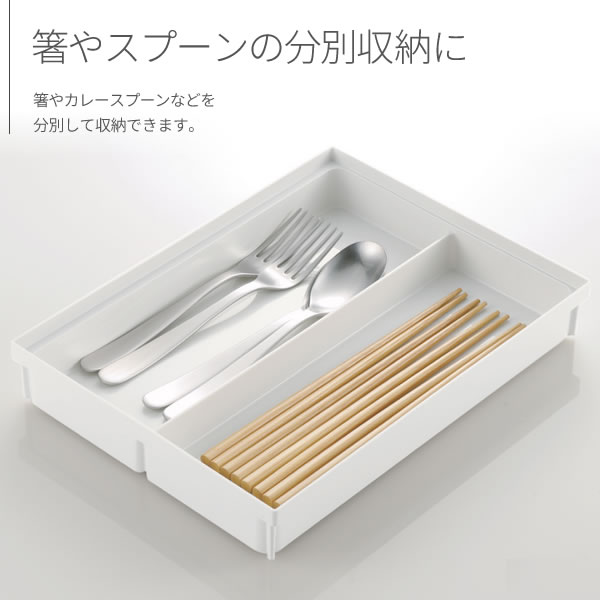箸やスプーンを整理収納箸やスプーン・フォーク・ナイフなどのカトラリー収納にぴったり。たっぷり入る2仕切り。