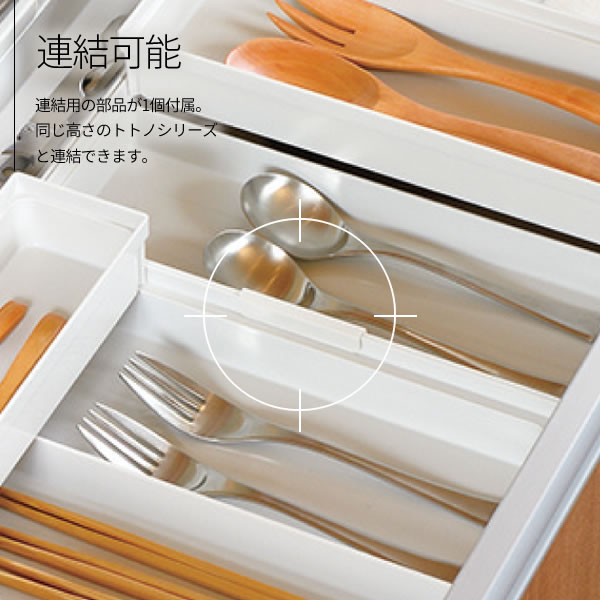 収納 箸 ナイフ フォーク スプーン 整理整頓 引き出し 食器棚 戸棚 ケース ボックス BOX カトラリー 多段収納 積み重ね収納 スライド式 連結可能 ティースプーン デザートフォーク 大容量 カレースプーン スタッキング ジョイント部品付き 調理台下 浅引き出し モジュール収納 すっきり スッキリ 片付く オススメ おすすめ 便利 使いやすい 人気 台所用品 台所グッズ キッチン用品 キッチングッズ トトノ TOTONO プラスチック製 幅28 奥行21 高さ4.4 cm センチ コンパクト 省スペース スリム 衛生的 4945680100175
