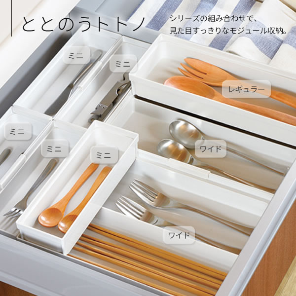 リッチェル キッチン収納 トトノ(totono) 引き出し用 カトラリーポケットR ワイド | 箸 スプーン 収納ケース 仕切り 引き出し内 中 整理 連結 ジョイント カトラリー 入れ 組み合わせ 重ね スタッキング システムキッチン 台所