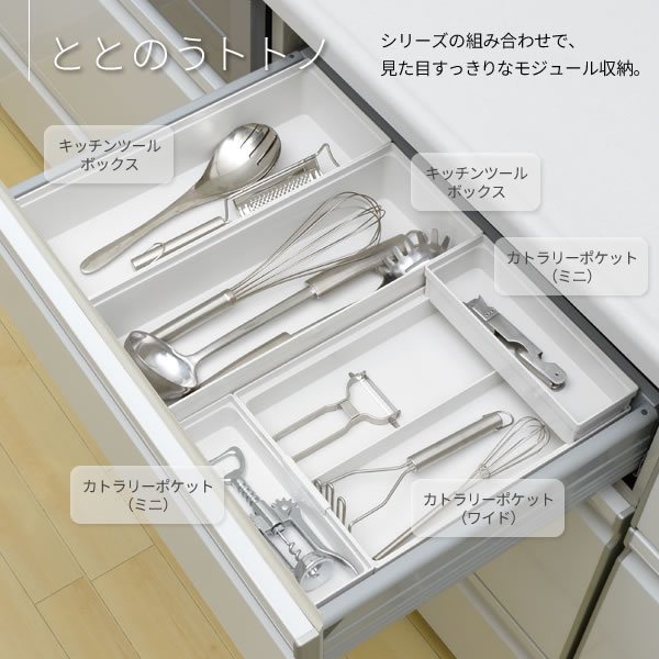 システムキッチンの引出し内がすっきり整う、トトノ(TOTONO)シリーズ