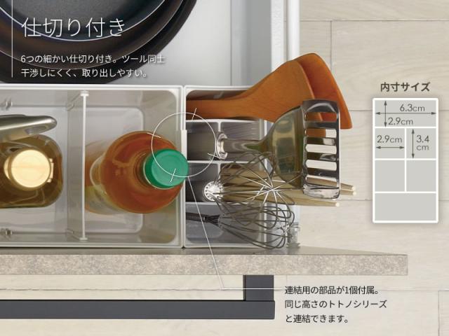 収納 調理器具 レードル お玉 菜箸 ターナー トング フライ返し 立てて収納 シンク下 深引き出し キッチン ケース ボックス BOX 仕切り付き 調理小物 トトノ TOTONO 水洗い 簡単手入れ プラスチック製 取り出しやすい ジョイント 連結 モジュール収納 幅14 奥行7 高さ14 センチ cm 便利 使いやすい 人気 すっきり スッキリ 片付く おすすめ オススメ キッチン用品 キッチングッズ 台所用品 台所グッズ 台所下収納 コンパクト 省スペース スリム 衛生的 清潔 4945680100212