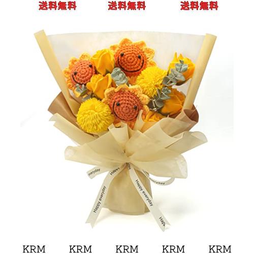 LOZIZI ソープスマイルフラワー 手編 ひまわり 花束 石鹸花 造花 枯れない花 メッセージカード付き、手提げ付き