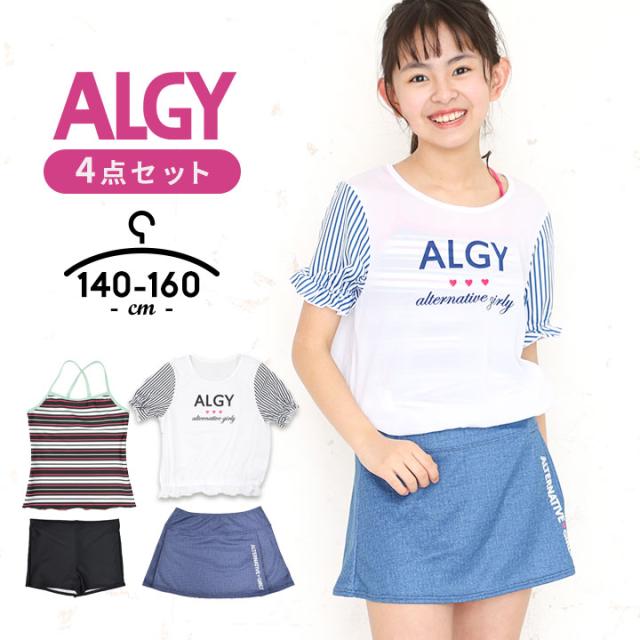 アルジー 水着 女の子 セパレート 4点セット タンキニ 140cm 150cm 160cm キュロット tシャツ 半袖 インナーパンツ ジュニア 水着 女の子 キッズ 水着 プール おしゃれ かわいい 小学校 小学生 中学校 ブランド ALGY 送料無料