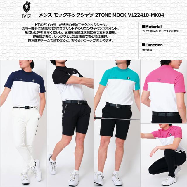 V12 ゴルフ メンズ 半袖 モックネック シャツ 2TONE MOCK V122410-MK04 ヴィ・トゥエルヴ 【新品】TAAR ゴルフウェア おしゃれ モックシャツ V12GOLF FEB3