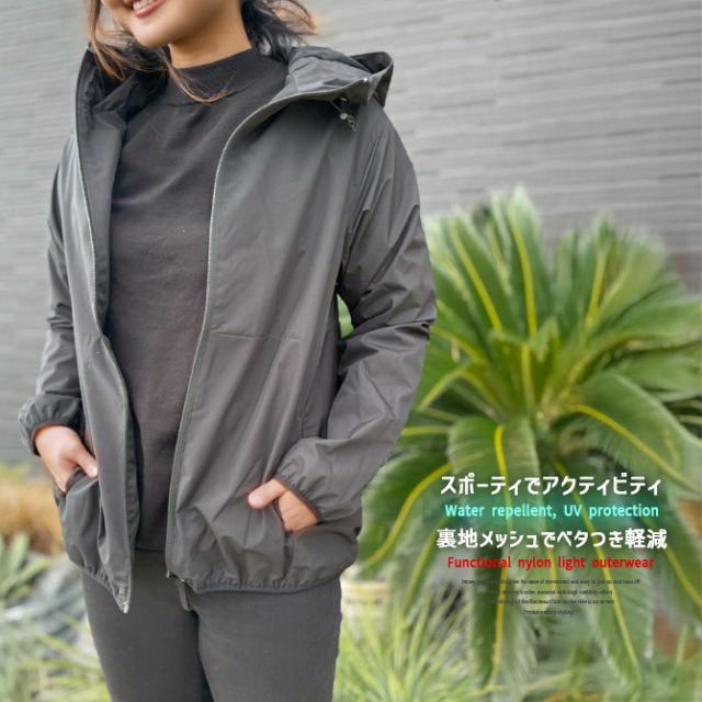 マウンテンパーカー レディース 耐水圧機能裏メッシュパーカー ウィンドブレーカー 裏地メッシュ ナイロンジャケット ライト ジャケット ブルゾン 撥水 防風 軽量