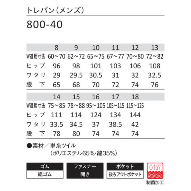 食品工場白衣 トレパン 800-40 メンズ カゼン KAZEN フードファクトリー 制服 ユニフォーム