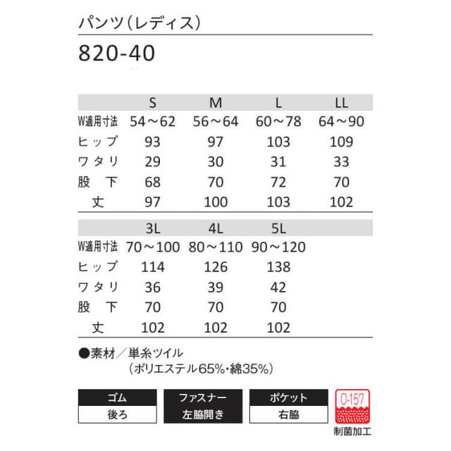 食品工場白衣 パンツ 820-40 レディス カゼン KAZEN フードファクトリー 制服 ユニフォーム