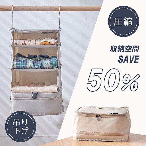・【圧縮機能】吊り下げや圧縮、どちらでも利用可能!圧縮時は収納スペースを50%節約可能